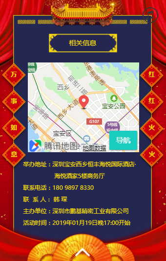 尊敬的嘉賓:衷心的感謝您一直以來對我公司的關(guān)心、支持和厚愛!歲月的年輪即將轉(zhuǎn)過2018年,嶄新的2019年正在踏著春天的步伐向我們走來。日月開新元,天地又一春,在這新春佳節(jié)來臨之際,特邀您出席我公司尾牙暨新春團拜會,恭候您的光臨!
